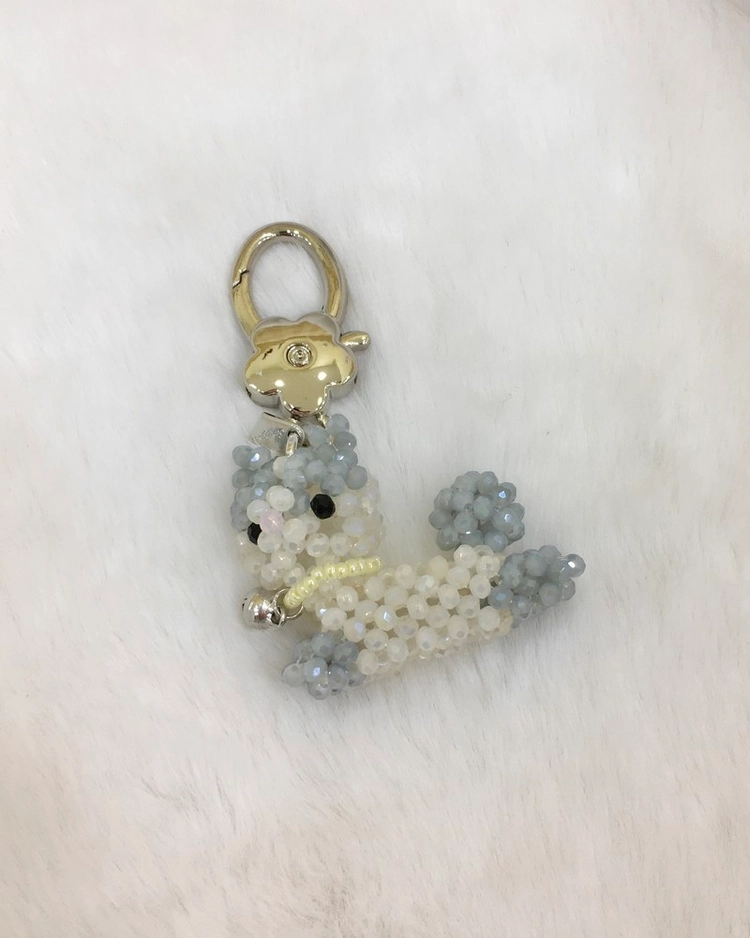 분홍색 코와 수염, 꽃 모양의 귀여운 키링 고리까지 단 사랑스러운 디자인의 키링입니다.