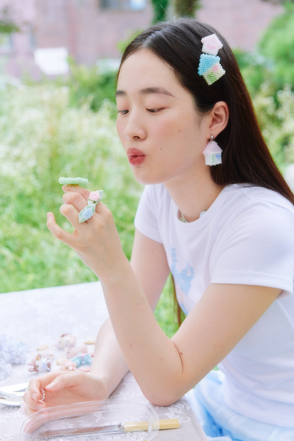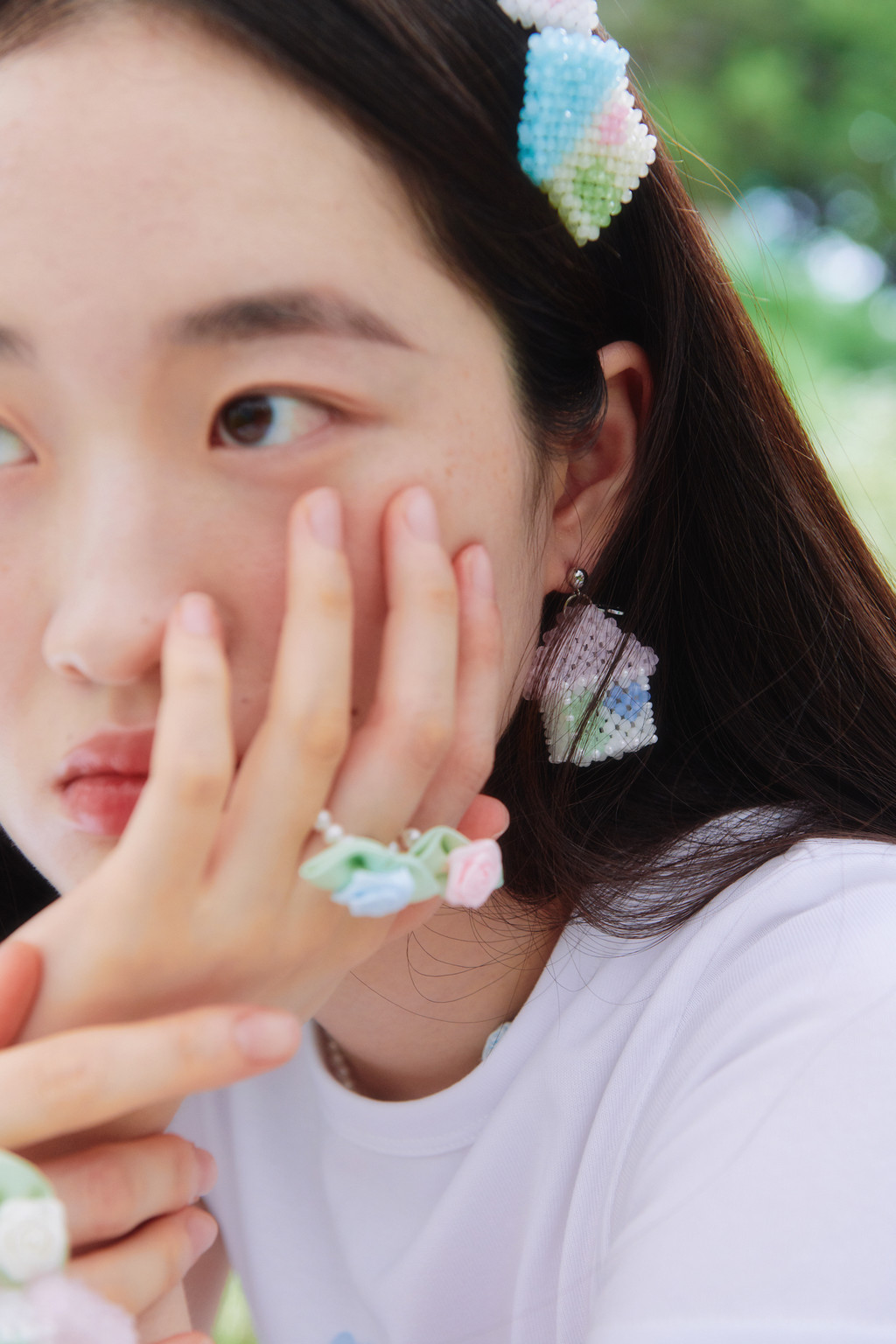 파스텔 톤의 장미는 섬세하게 표현되어 손가락 위에 자연스러운 아름다움을 더해줍니다.