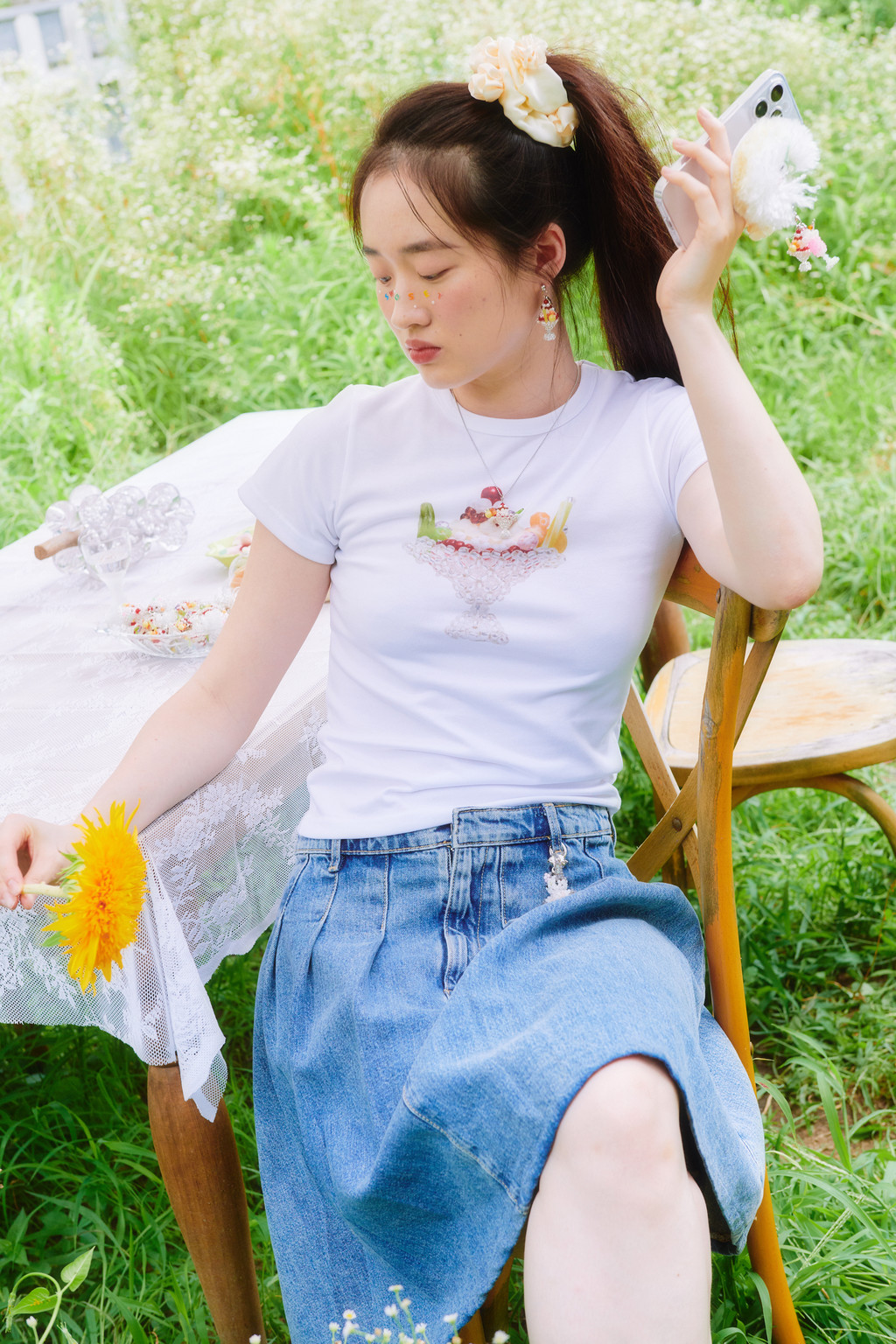 사랑스러운 무드의 푸딩 아라모드 그래픽 티셔츠입니다.