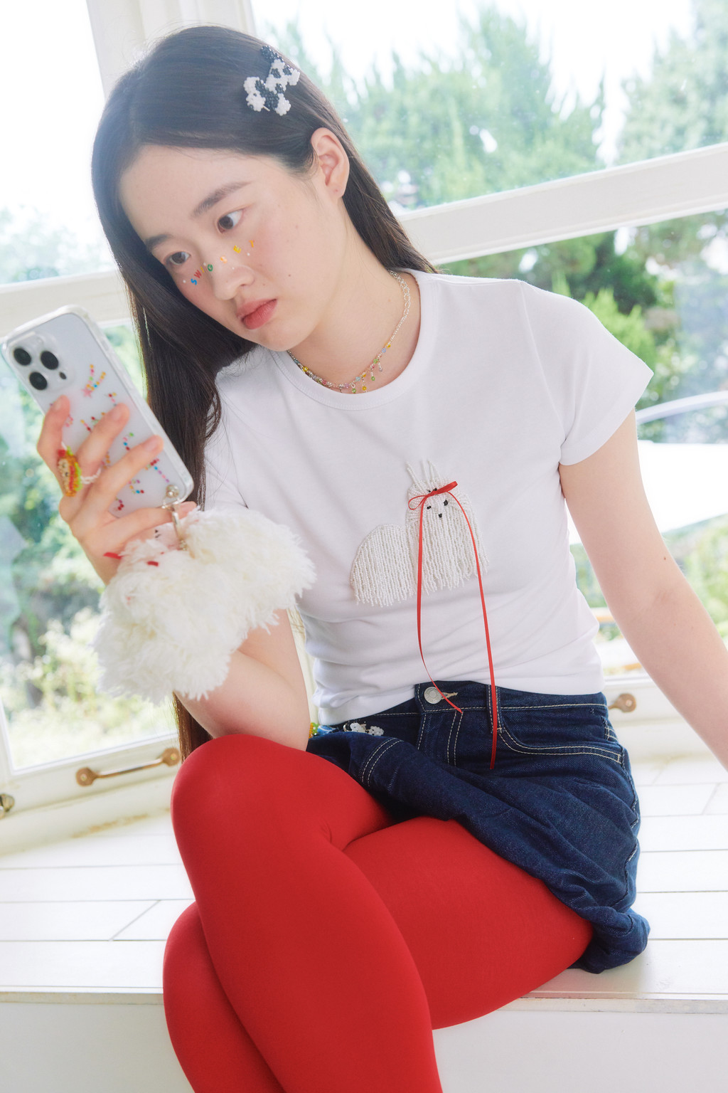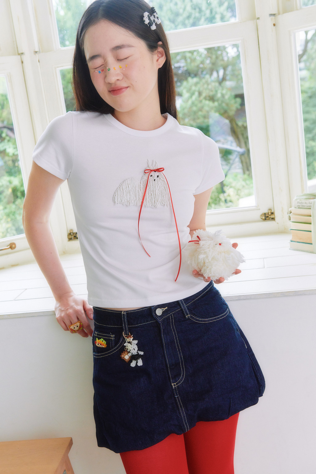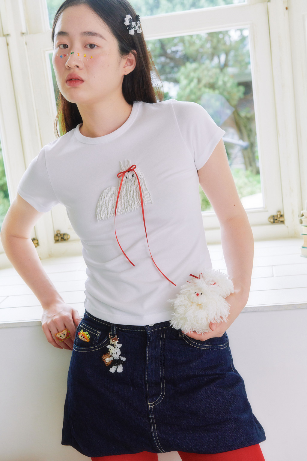 입체적인 비즈 작업으로 정교하게 표현한 말티즈가 돋보이는 유니크한 디자인의 티셔츠입니다.