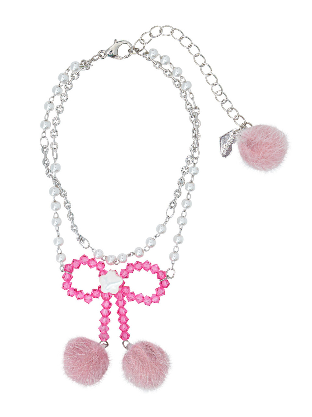 Snow Ribbon Beads Bracelet (Fuchsia)