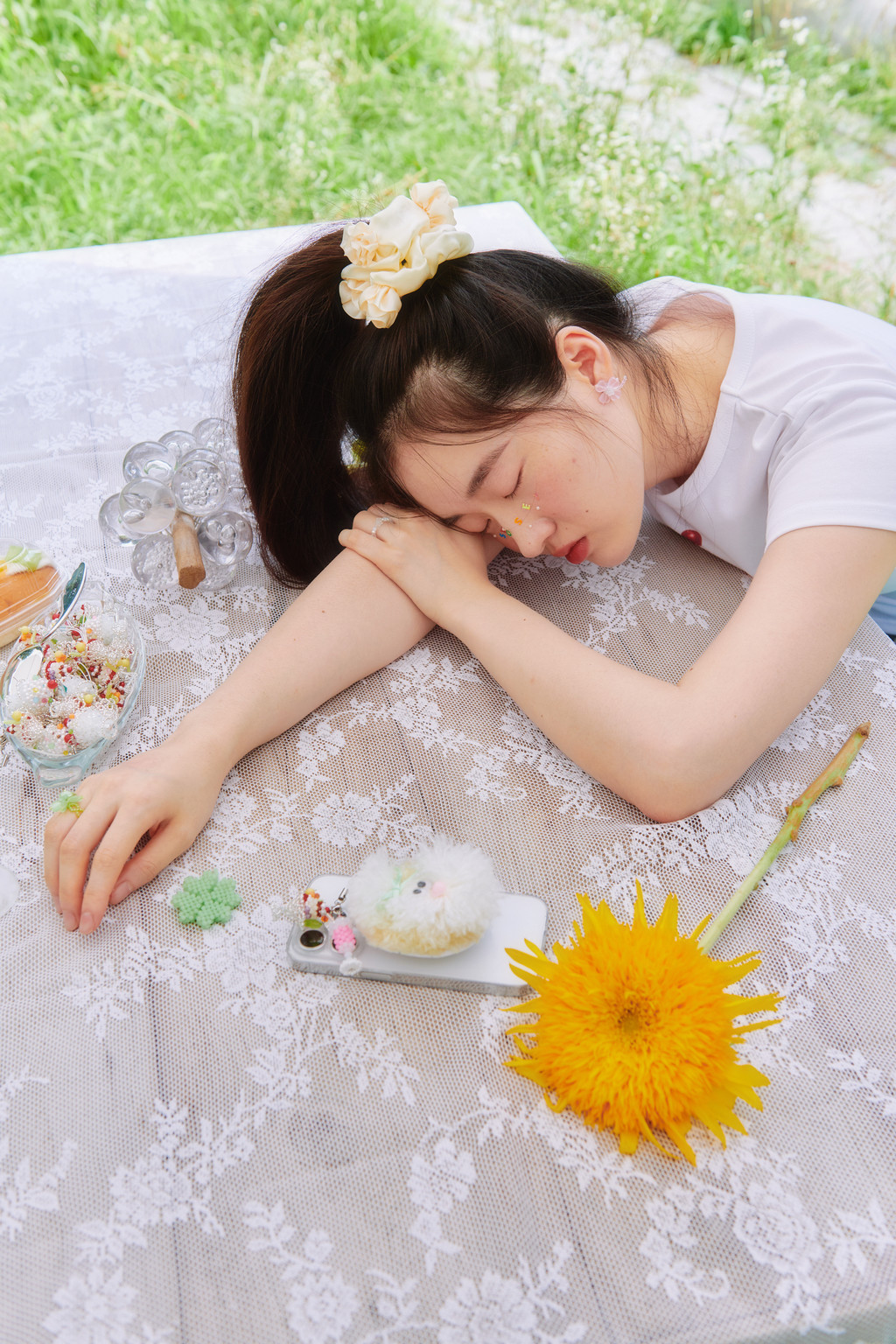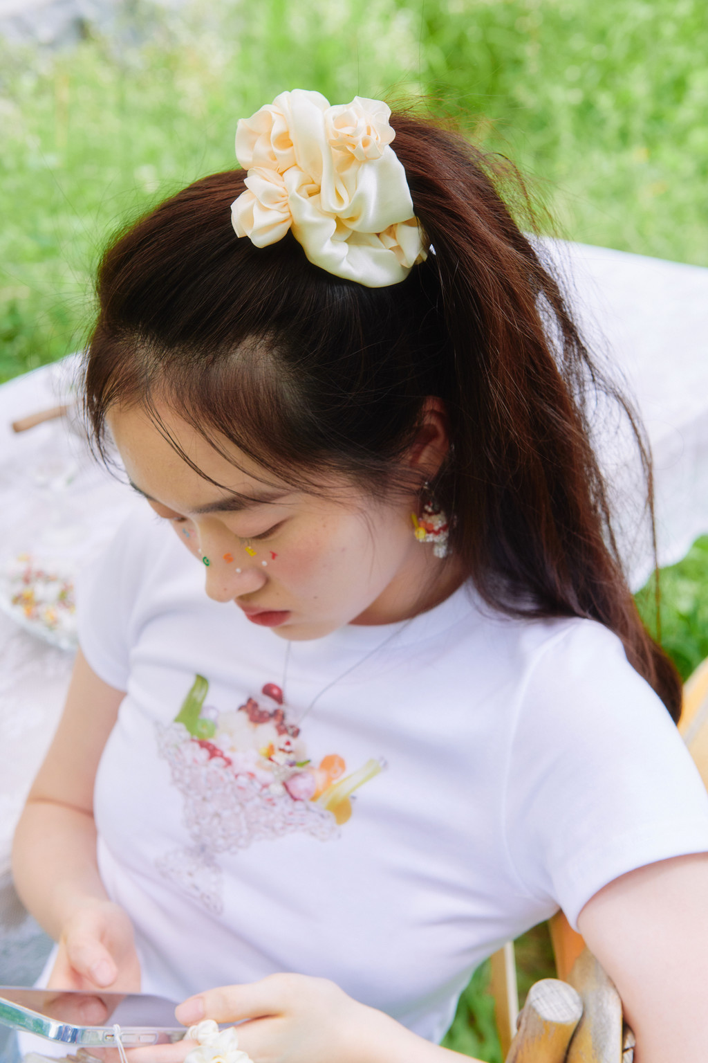 Silk Rose Hair Chouchou (Cream)