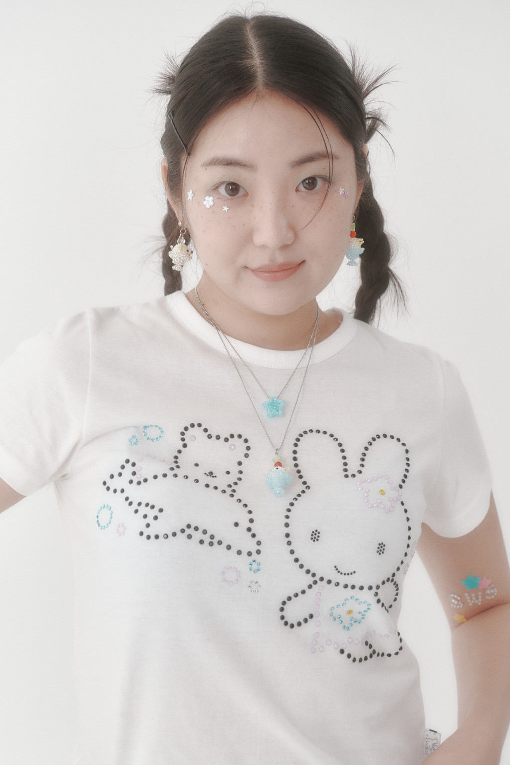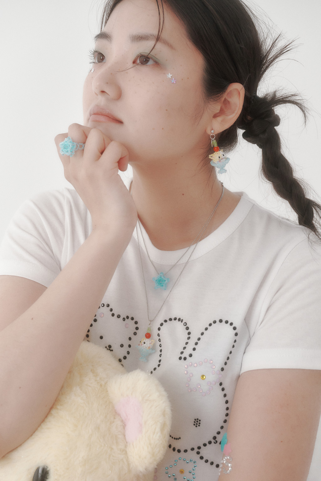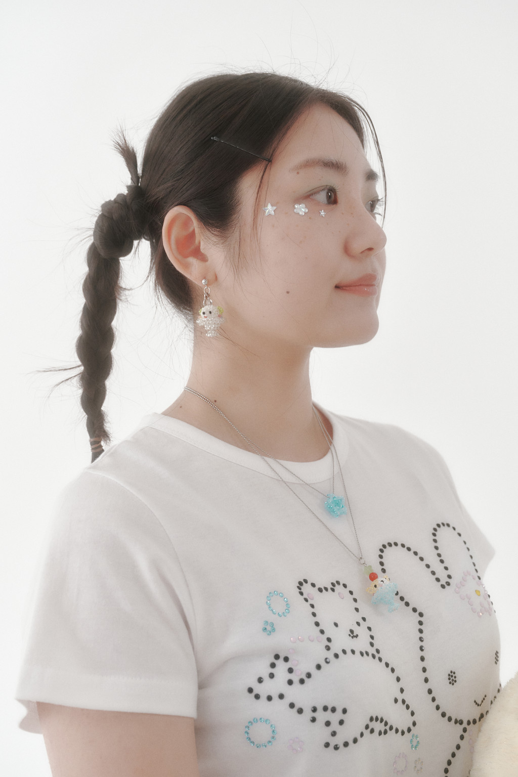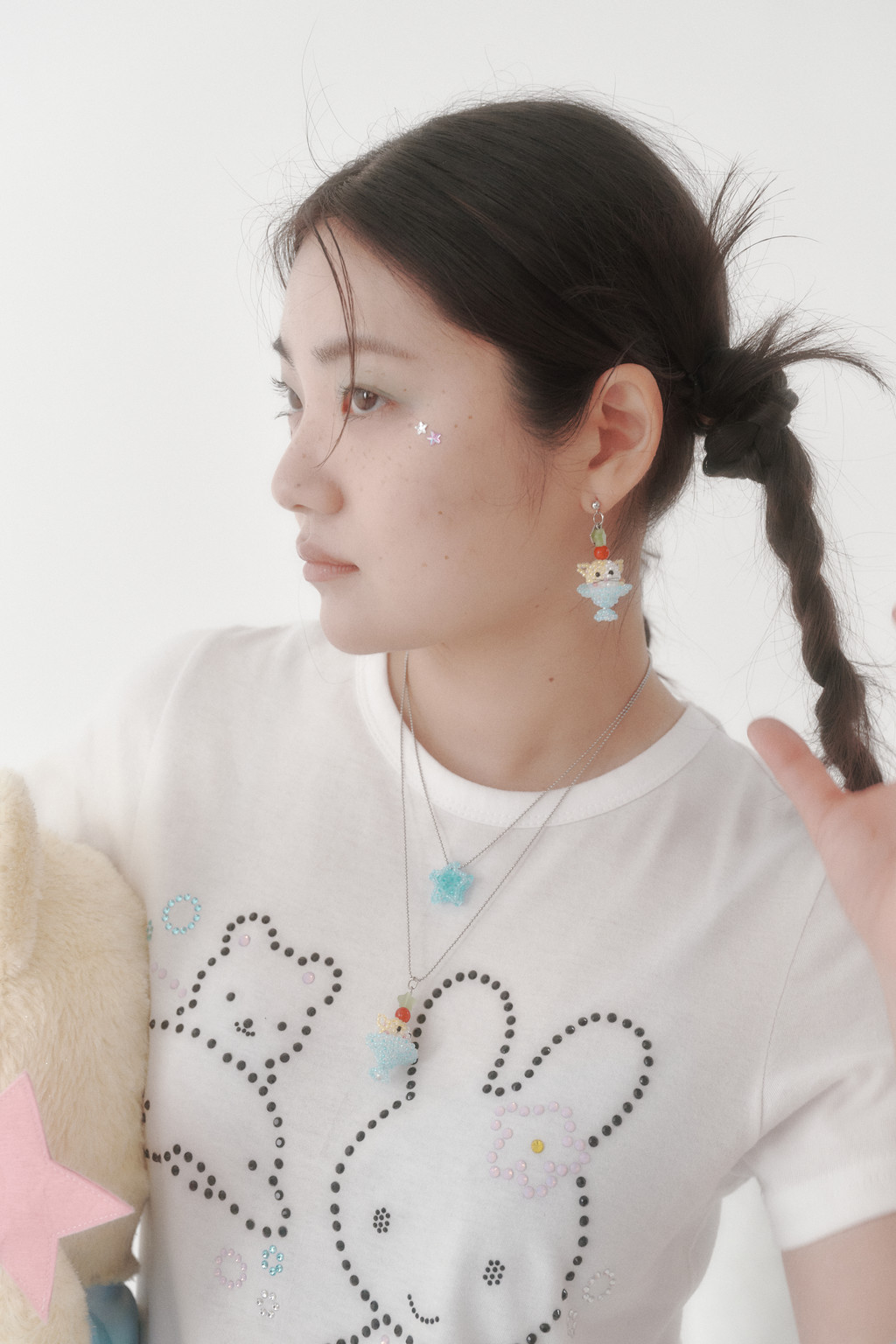 • 치즈색 비즈로 치즈 태비 고양이의 얼룩을 표현하고, 머리 위엔 토마토색 원석을 얹어 토마토를 올린 듯한 귀여운 포인트