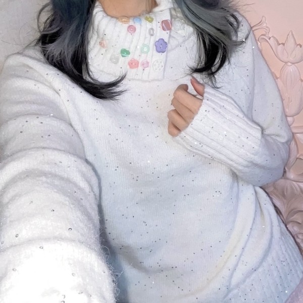 Colorful Button-Down Slit Turtleneck Knit (Off-White)