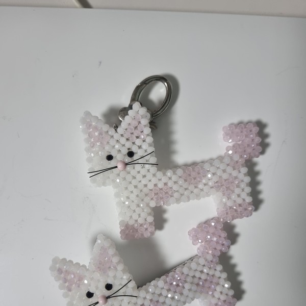 저는 이 납작한 시리즈가 정말 좋아요!!! 너무 귀엽고 유니크해요! 스윙셋 다른 키링들보다 납작시리즈 애들이 제일 귀엽다고 생각합니다. 특히 이 고먐미는 까만 눈, 분홍코, 뽀짝한 수염부터 물음표 모양 꼬리까지 킬링포인트가 한둘이 아녜요. 키링만 갖고 있다 이 라인은 무조건 소장하자는 심정으로 핀도 샀어요. 머리에 꽂고 다니는 건 제 스타일상 좀 무리지만, 달력에 꽂는 식으로 인테리어용으로 쓰거나 가방에 살짝쿵 달아줘도 아주 예쁩니다. 납작 시리즈가 계속 이어지길 바랍니다~ 아, 이번에 많이 구매해서인지 곁들여 보내주신 것들도 잘 받았어요. 감사해요!