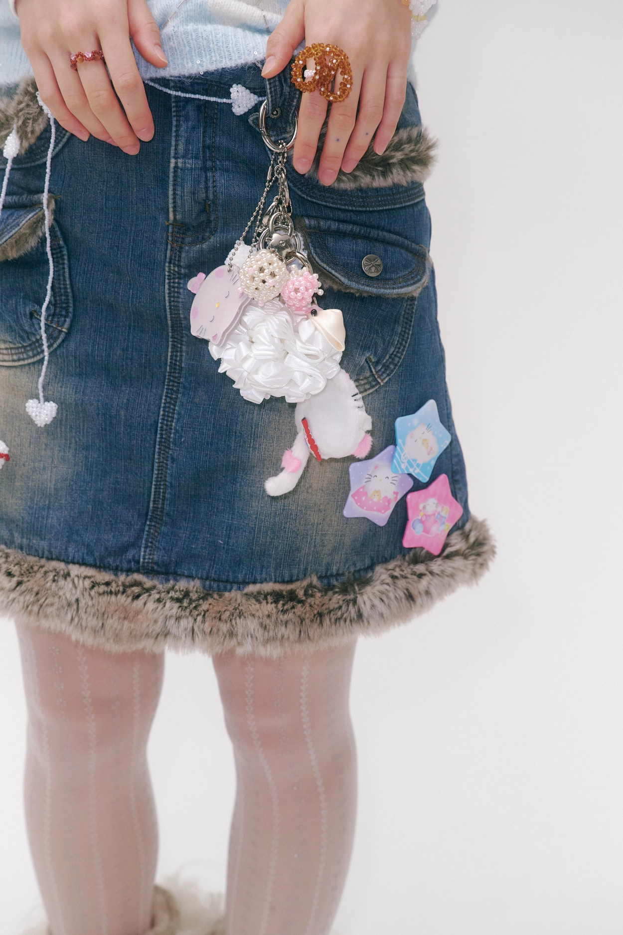Fluffy Star Crochet Beads Ring (White)