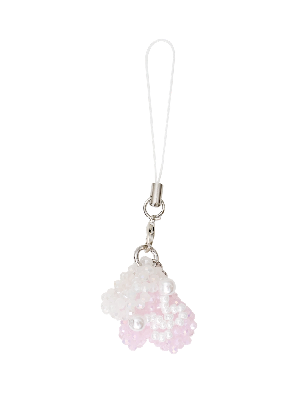 소프트한 베이비 핑크 컬러로 사랑스러움을 가득 담은 장갑 모양의 비즈 폰 스트링입니다.