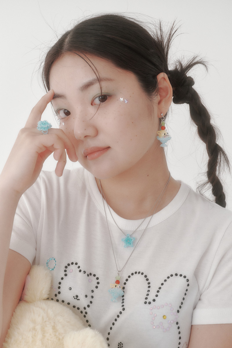 • 무광의 연두색 비즈로 귀를 포인트로 표현