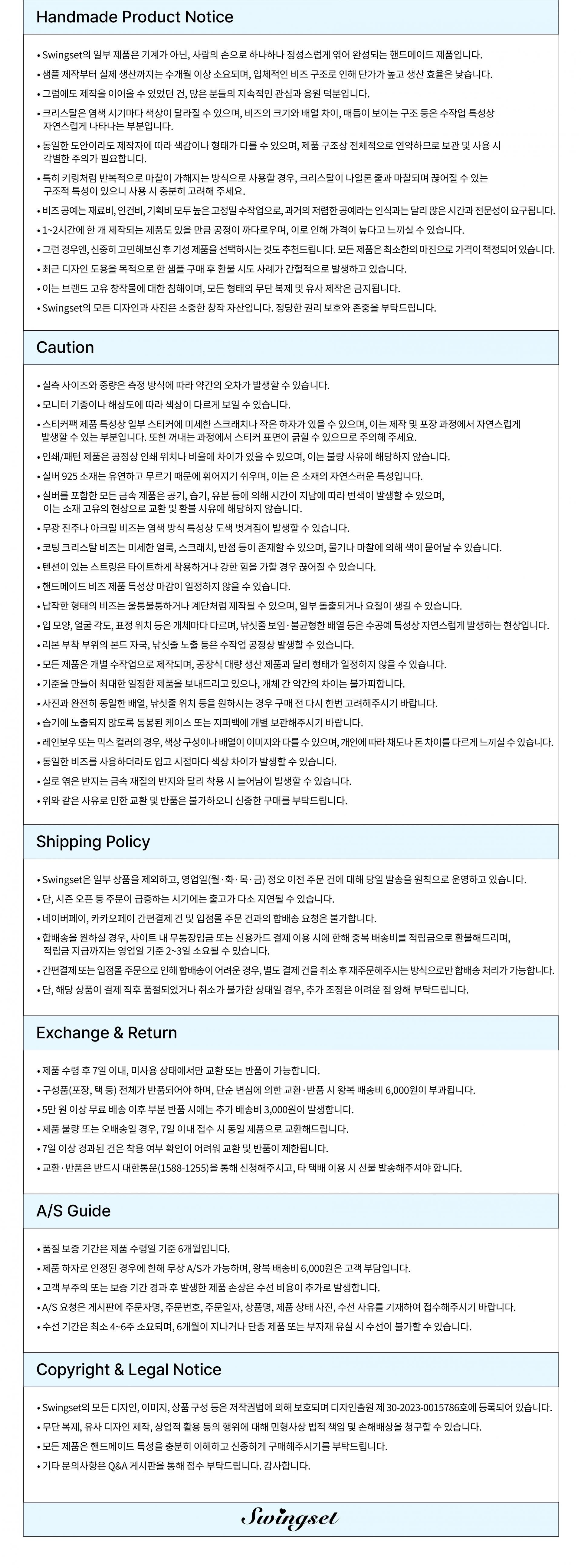 - 소재 특성상 약한 충격에도 일부가 벗겨질 수 있습니다. 사용 중 자연스럽게 발생하는 경미한 손상은 불량 사유에 해당하지 않아 교환 및 환불이 어려울 수 있습니다.