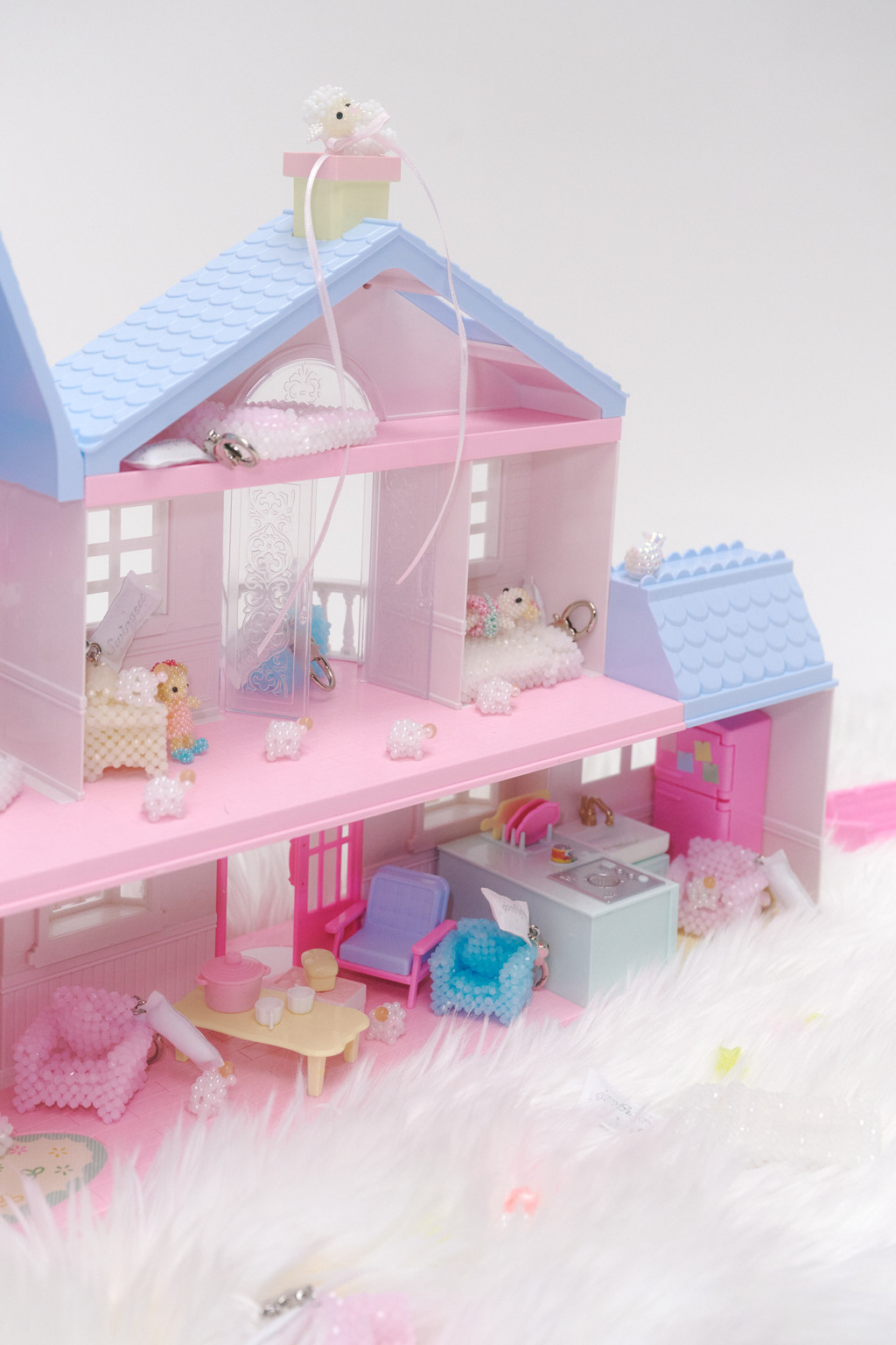 * 수작업 공정상 매듭 처리, 리본 부착 부위의 본드 자국, 비즈 표면의 미세한 스크래치나 반점 등이 발생할 수 있으며, 이는 공장에서 일괄 생산되는 제품과 다른 수작업 방식에서 비롯된 자연스러운 특징입니다.