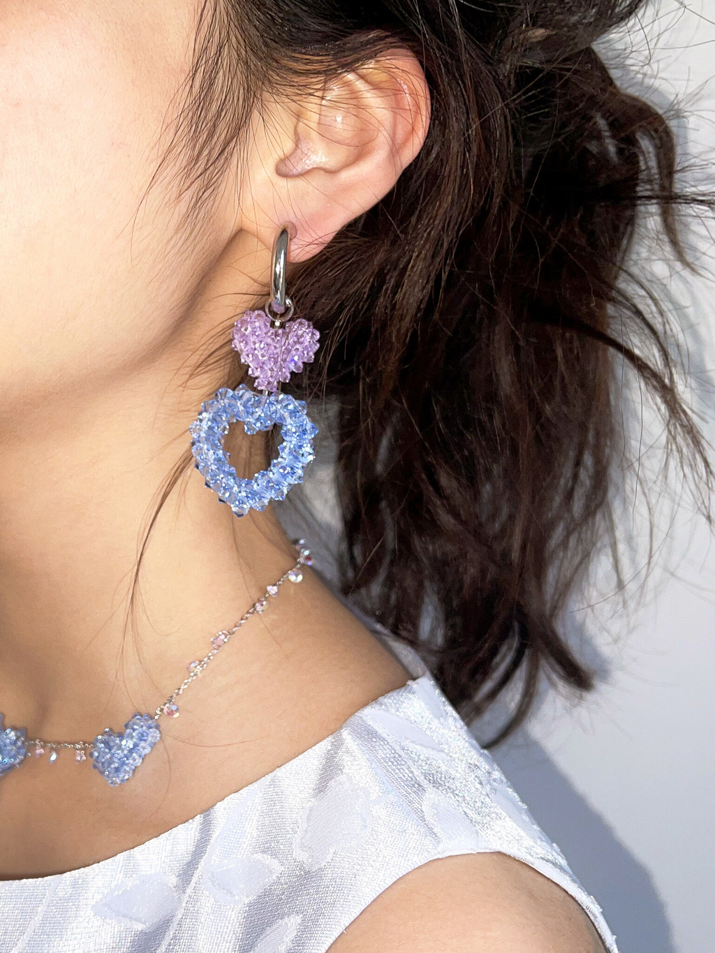 통통한 작은 하트 밑으로 커다란 오픈 하트를 달아 포인트를 준 이어링입니다.