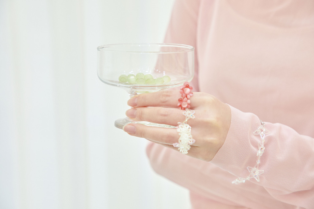 비즈 반지는 정교한 디자인을 위해 모두 나일론 줄로 작업되며, 특성상 약간의 탄력이 있어 시간이 지나 비즈들이 자리를 잡으며 어느 정도 늘어날 수 있지만, 기본적으로는 잘 늘어나지 않는 점 참고 부탁드립니다.