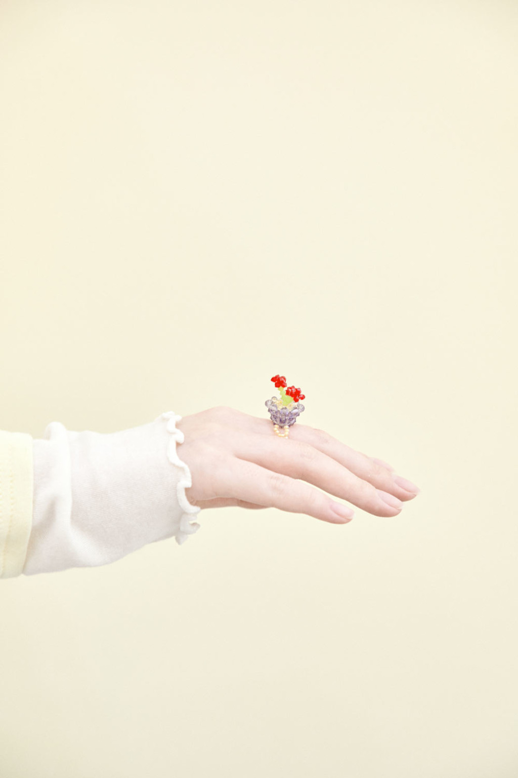 섬세하고 견고하게 제작된 화분 형태의 반지입니다.
