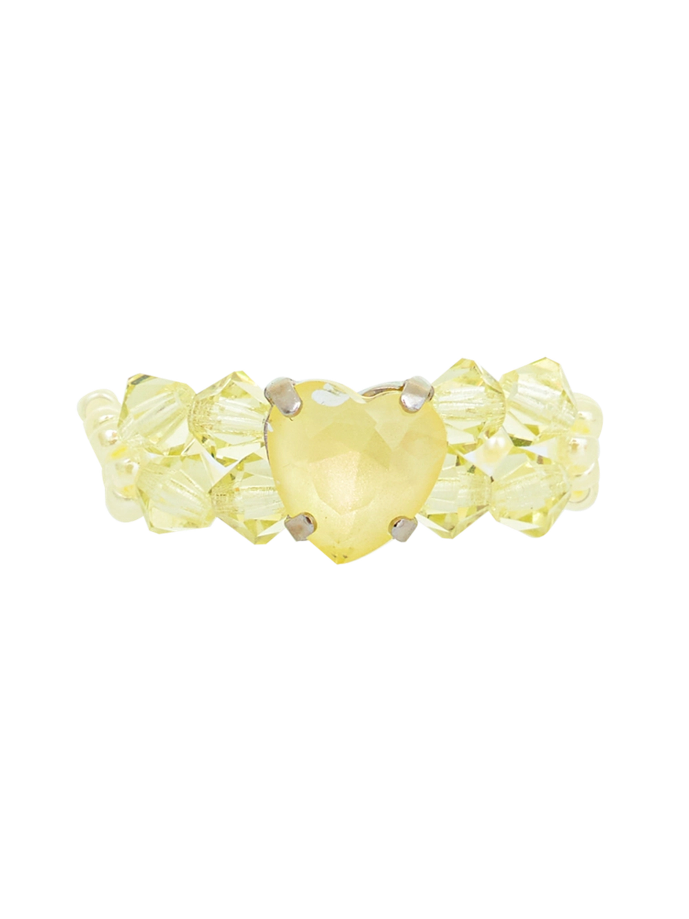 하트 모양의 스톤을 크리스탈과 함께 엮어 만든 비즈 반지입니다.