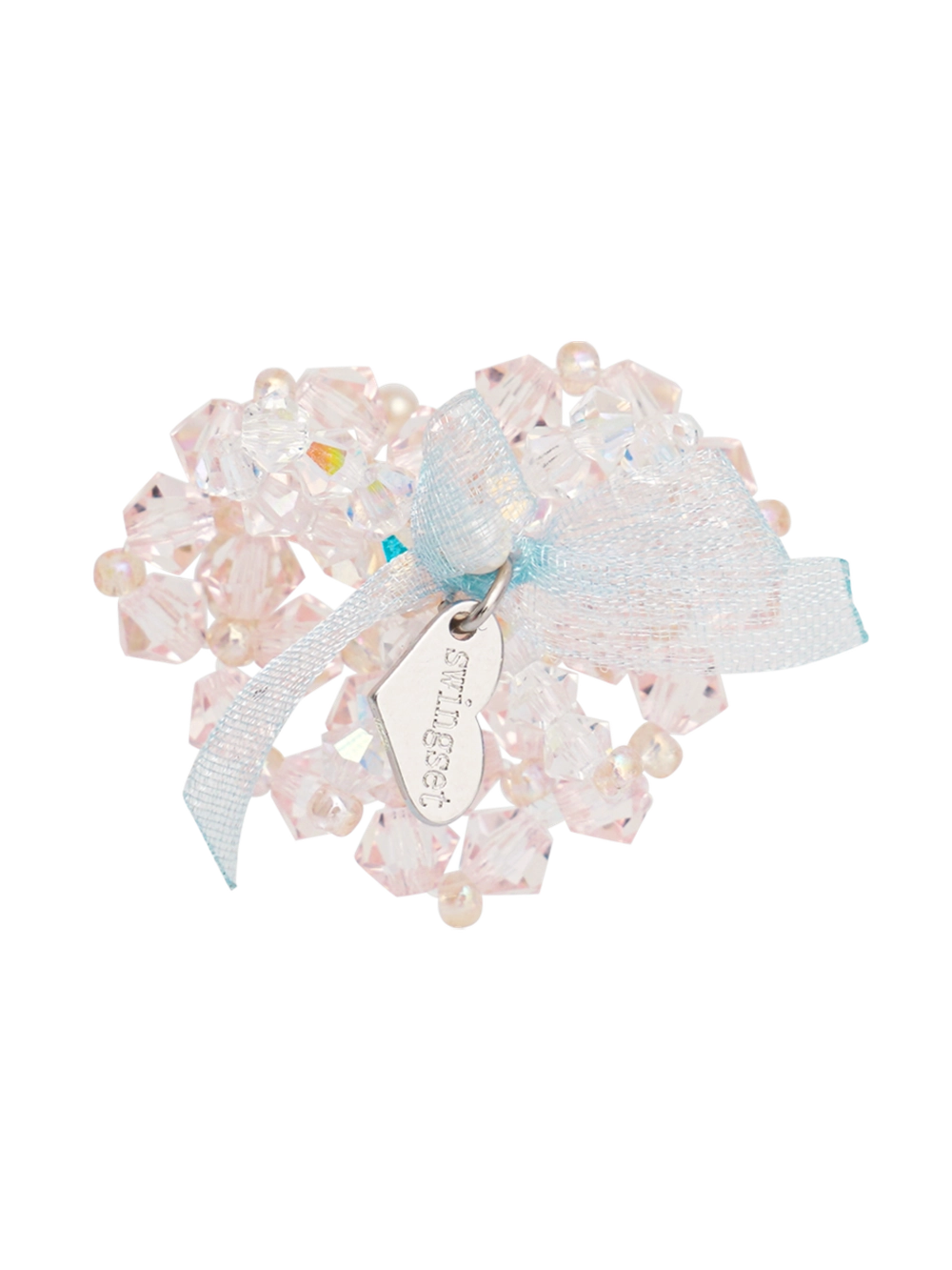 정교한 수작업으로 제작된 오픈 하트 위, 비즈 리본과 오간디 리본을 레이어드하여 장식해준 후 진주를 얹어 제작된 사랑스러운 반지입니다. Swingset 로고가 새겨진 하트 참으로 마무리되어 더욱 사랑스럽습니다.