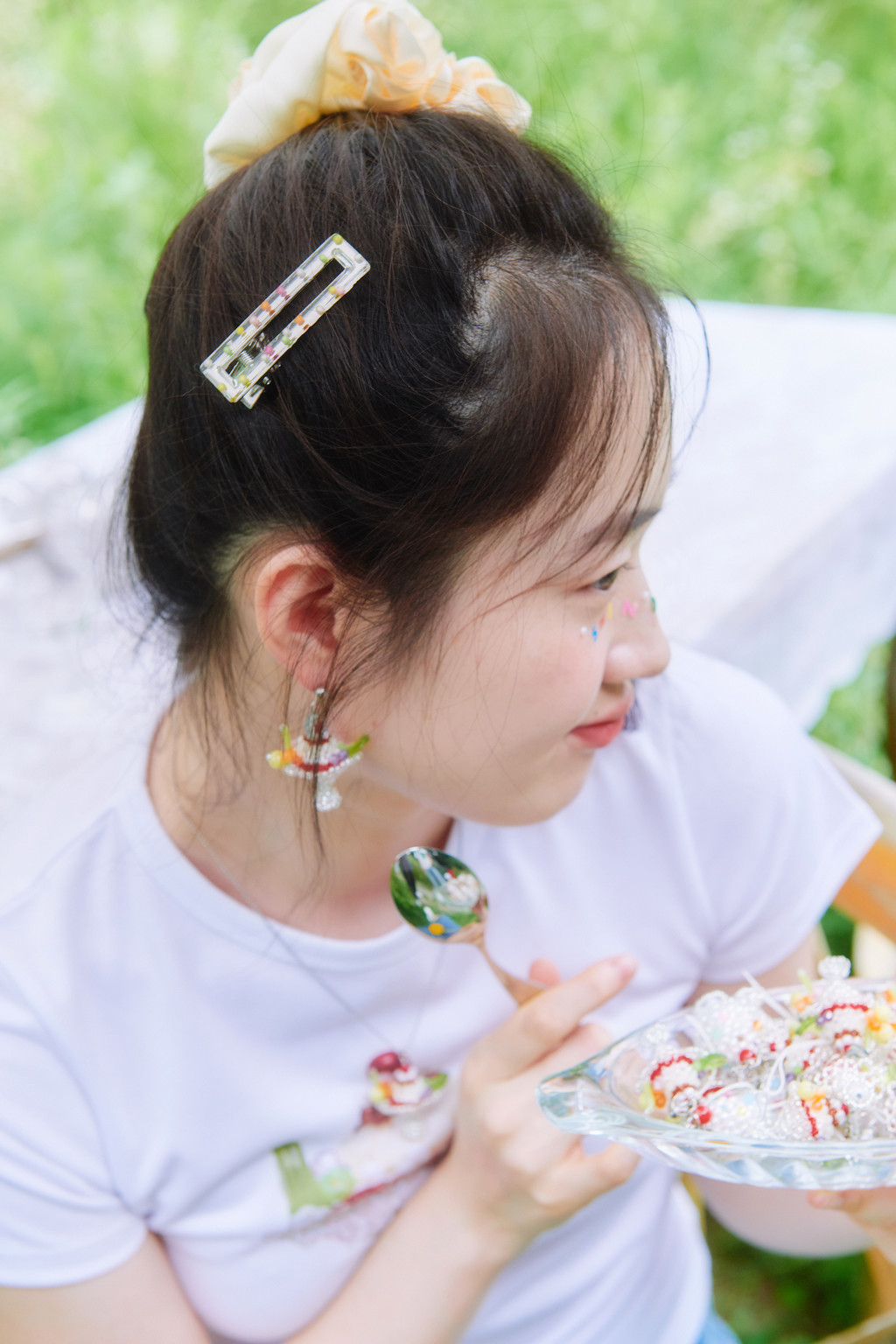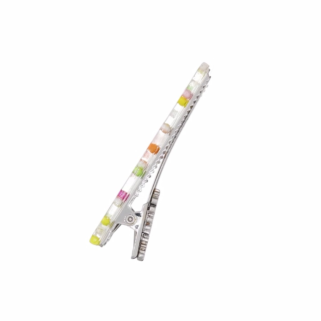 투명한 바디에 다채로운 색상의 도트가 포인트로 더해진 헤어 클립입니다.