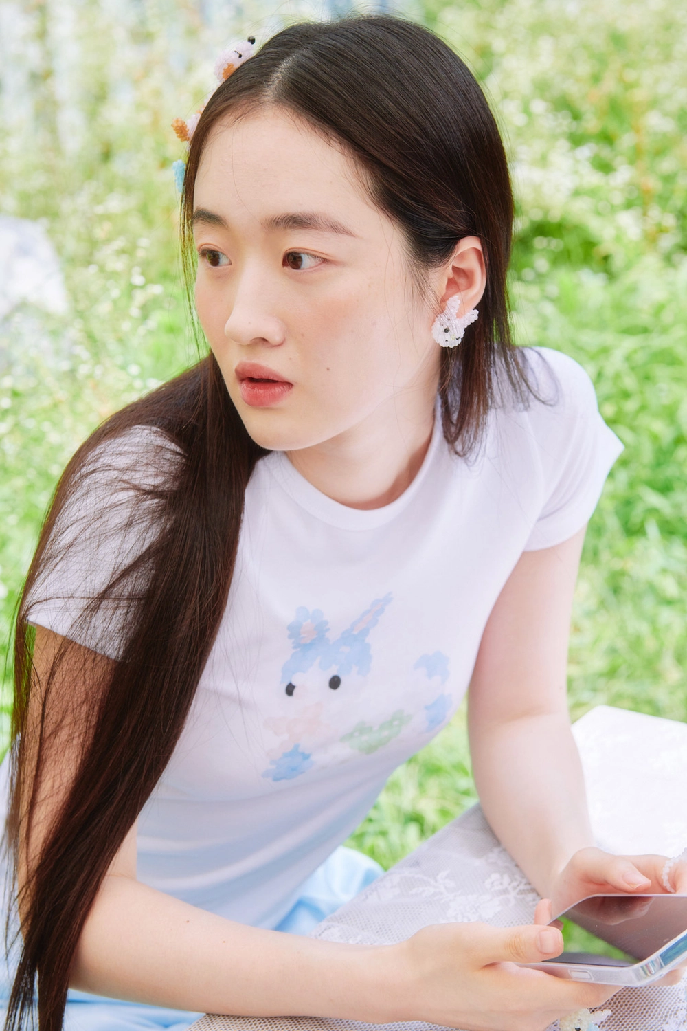 Rabbit Key Ring 시리즈의 토끼 얼굴이 달린 비즈 이어링입니다.