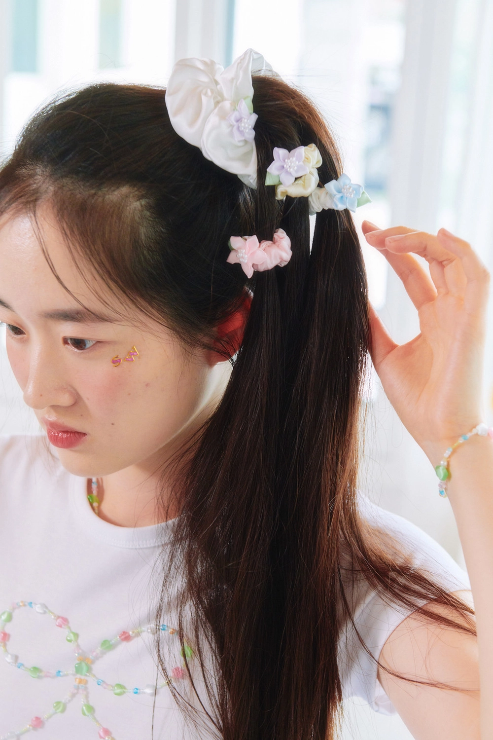편안한 착용감을 위해 샘플링을 여러 번 수정하여 정성을 들여 완성한 제품입니다. 부드러운 고무줄로 제작되어 손쉽게 착용 가능하며, 사랑스러운 파스텔톤 컬러와 실크 소재로 다양한 스타일에 활용할 수 있는 웨어러블한 아이템입니다.