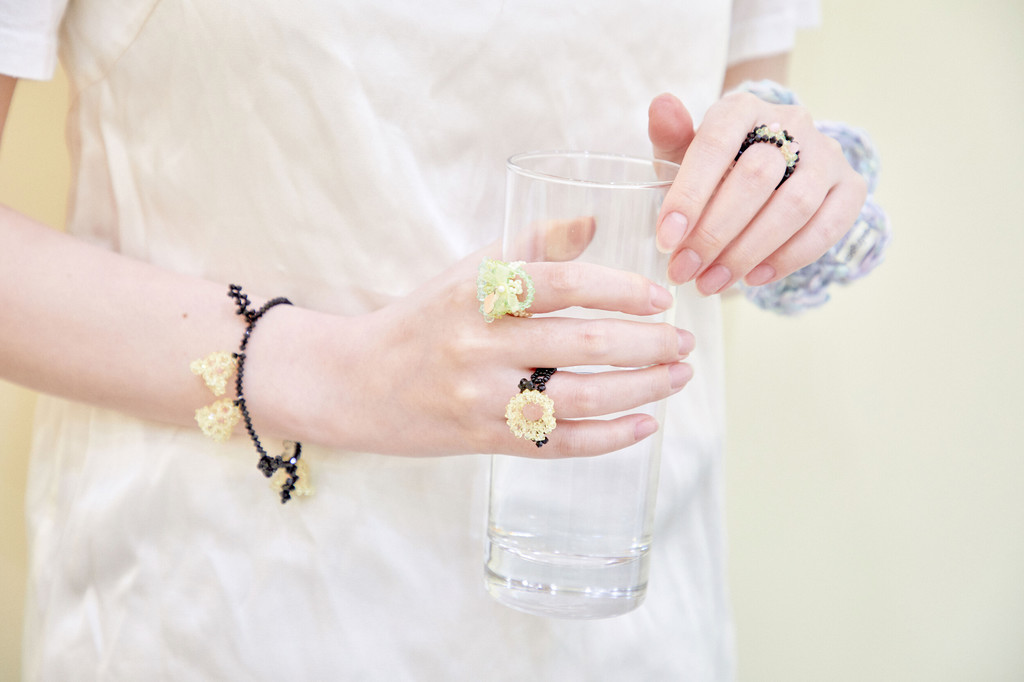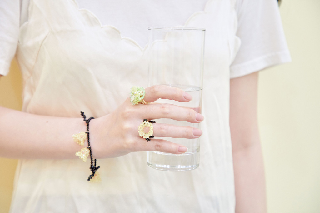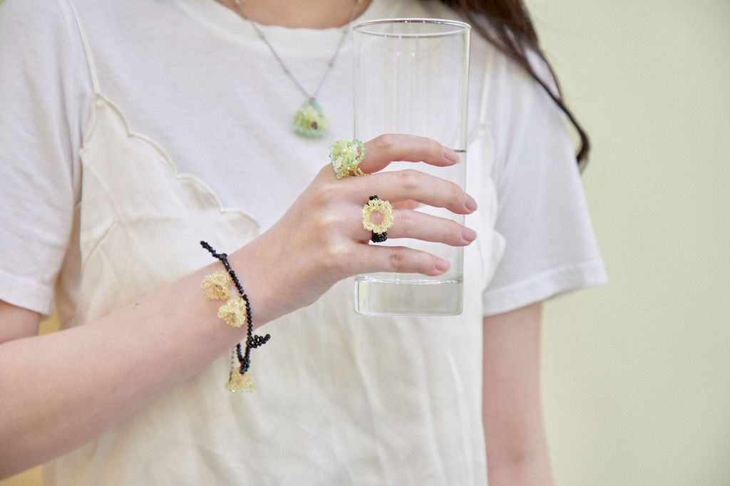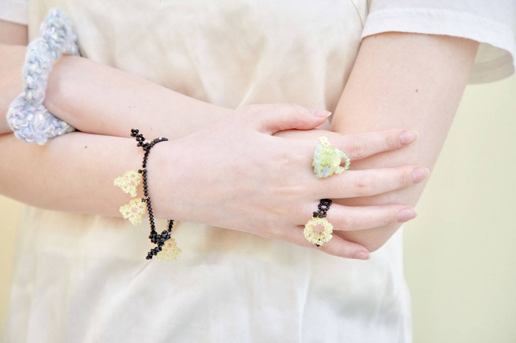 사랑스럽고 섬세한 방울꽃 모양의 비즈 팔찌입니다.