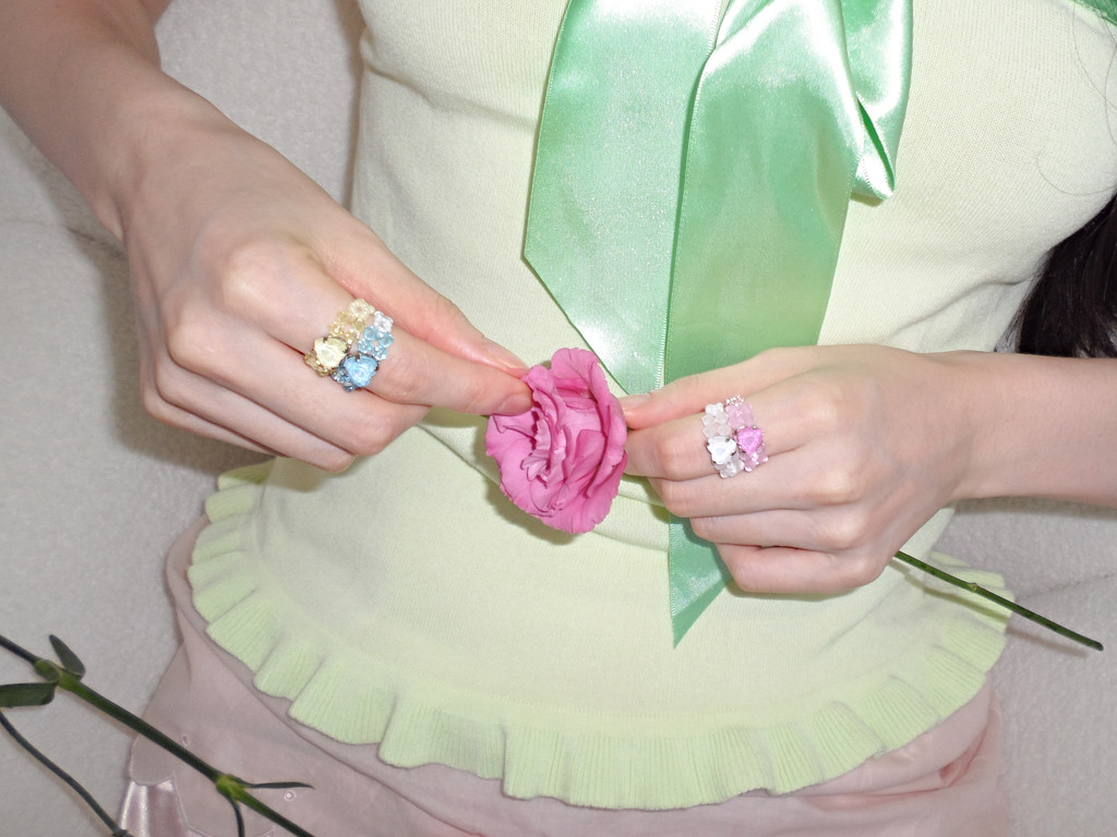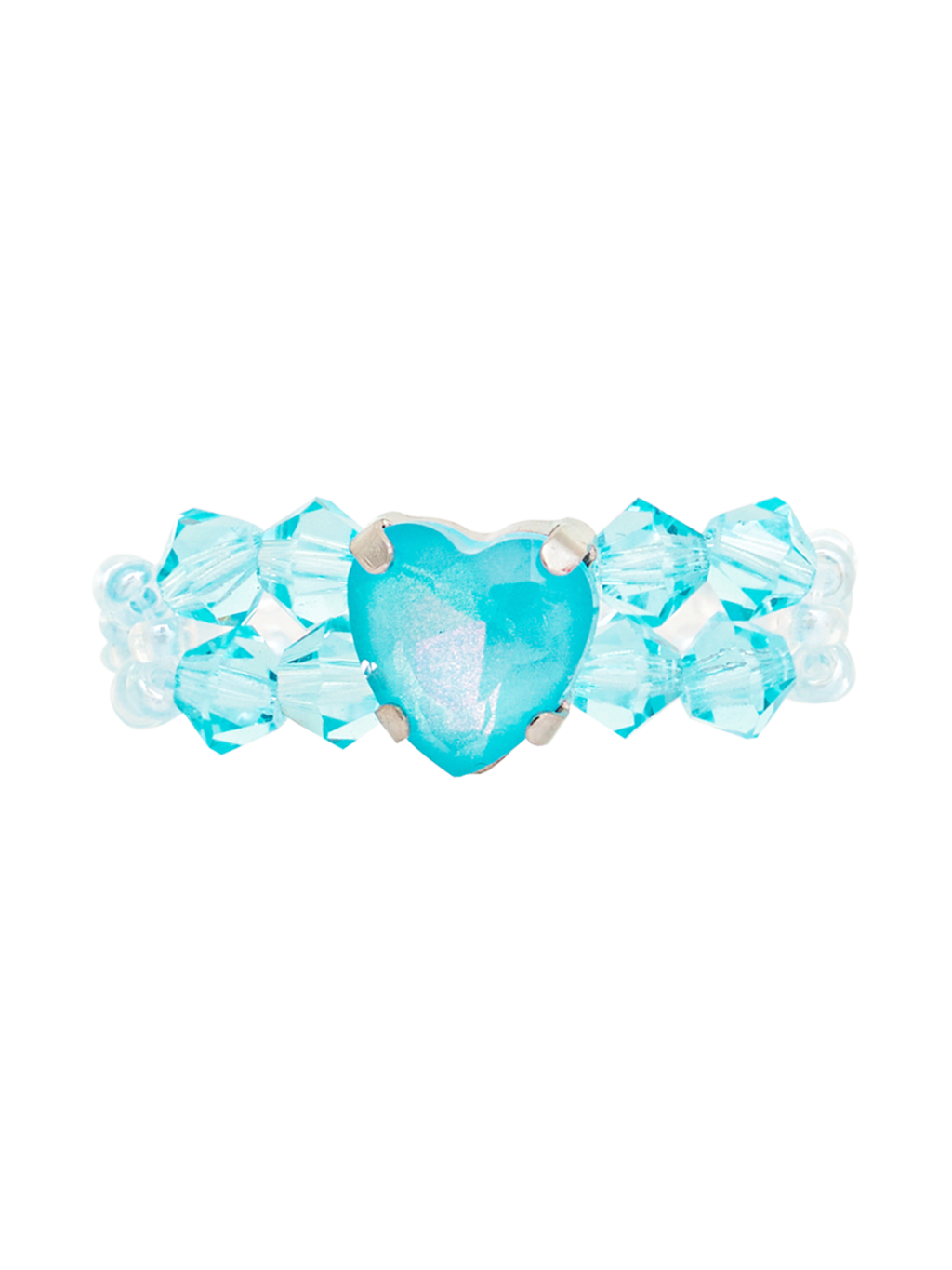 하트 모양의 스톤을 크리스탈과 함께 엮어 만든 비즈 반지입니다.