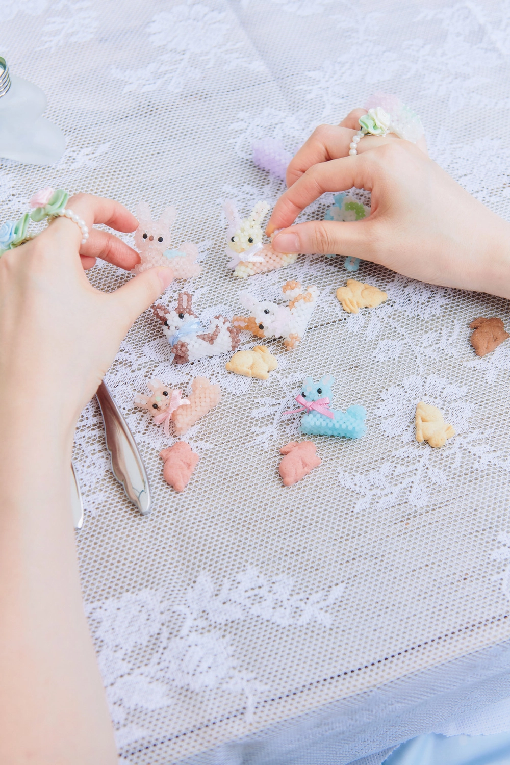 * 핸드메이드 제품은 공장에서 찍어나오는 제품이 아니기 때문에, 특성상 매듭, 리본 본드 자국, 비즈 잔기스나 반점 등이 있을 수 있습니다.